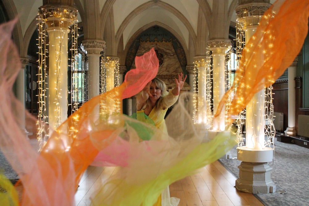 ‘Catch the Colour’ (dancer facing forward in yellow throwing scarves forward) £75