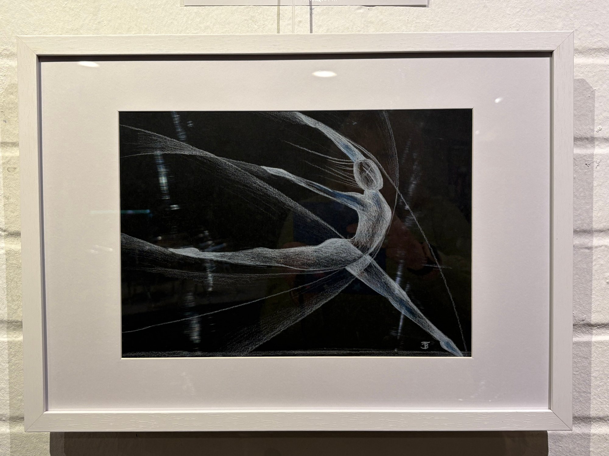 This is an original drawing on a leaping dancer, enphasising it's elegance and movement with Fracturing and shading.